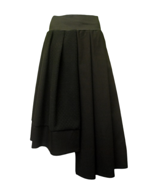 47,00€Falda multitalla de estructura dual, corte de pequeño vuelo por un lado y de tablones por otro. Tejidos gruesos y cálidos para llevar en tiempo frío. Cómoda y original.