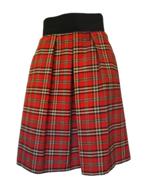 37,00€Falda con corte inspirada en la falda escocesa. Compuesta por un lateral liso y otro con pliegues. Se engancha con una hebilla de liberación que crea un juego de asimetría muy particular.. Colores granate y negro con dibujo notas musicales en blanco. Algodón 70% La falda se adapta a tallas M-L