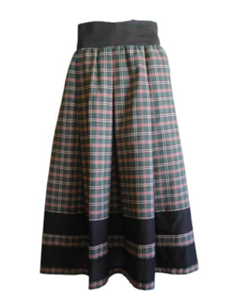 56,00€Falda evocación Galicia. Lleva bolsillos ocultos entre los pliegues. Una prenda con aires gallegos y corte contemporáneo. Debido a su cinturilla elástica se adapta a varias tallas color predominante el verde
