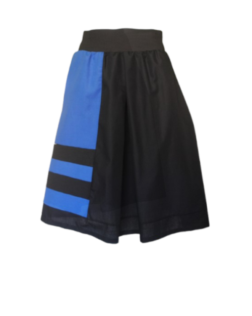 53,00€Falda de tejido rígido asimétrica. La posibilidad de dos posiciones crean dos simetrías de corte geométrico. Aplicación de cintas negras con inspiración de la falda gallega. Multitalla. Largo de la parte más larga cm. Puedes contactarnos al 646354830 0 por mail para confirmar si las medidas se adaptan a tí