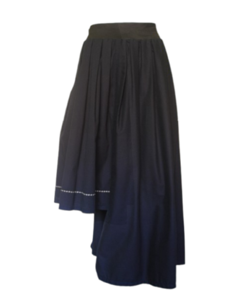 49,00€Falda de tejido rígido asimétrica. La posibilidad de dos posiciones crean dos simetrías de corte geométrico. Aplicación de cintas negras con inspiración de la falda gallega. Multitalla. Largo de la parte más larga 80 cm. Puedes contactarnos al 646354830 0 por mail para confirmar si las medidas se adaptan a tí