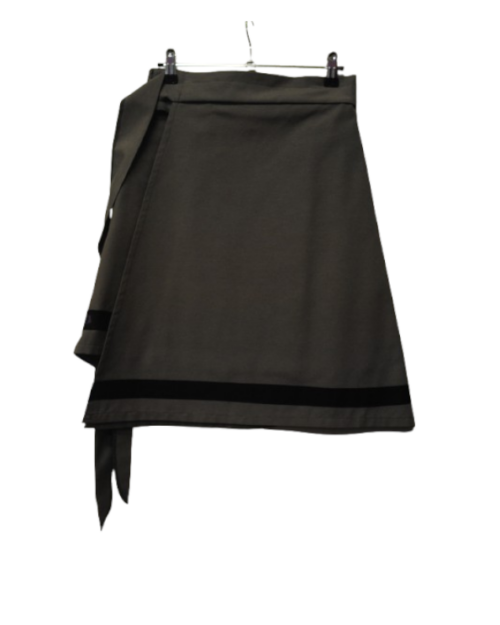 49,00€Falda de tejido rígido asimétrica. La posibilidad de dos posiciones crean dos simetrías de corte geométrico. Aplicación de cintas negras con inspiración de la falda gallega.