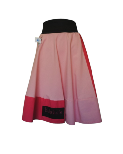 50,00€Falda con vuelo y bordado BULEBULE superpuesto. Tejidos en tonos de rosas. Tallaje pequeño, hasta una M