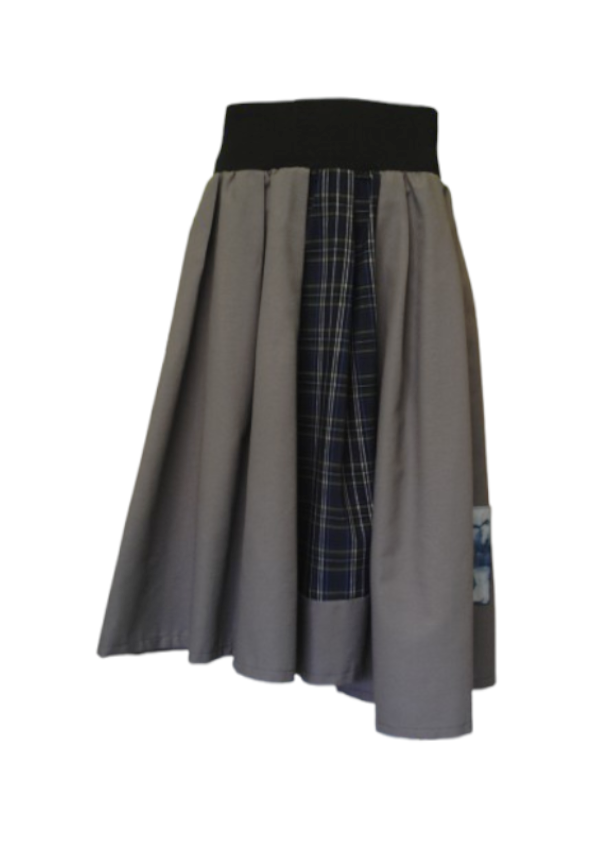 Falda multitalla de estructura dual, corte de pequeño vuelo por un lado y de tablones por otro.