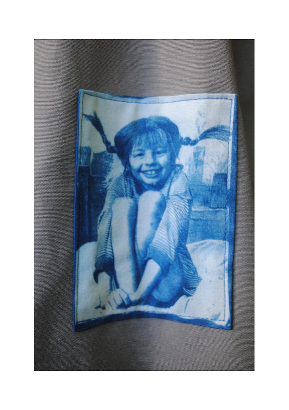 Lleva aplicación cosida de cianotipia hecha en nuestro propio taller