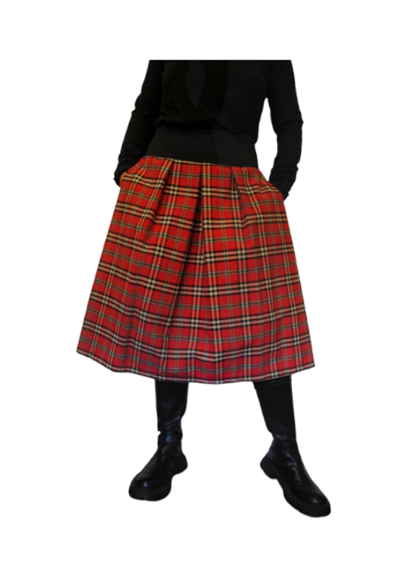 Falda en tejido escocés con bolsillos ocultos entre sus pliegues