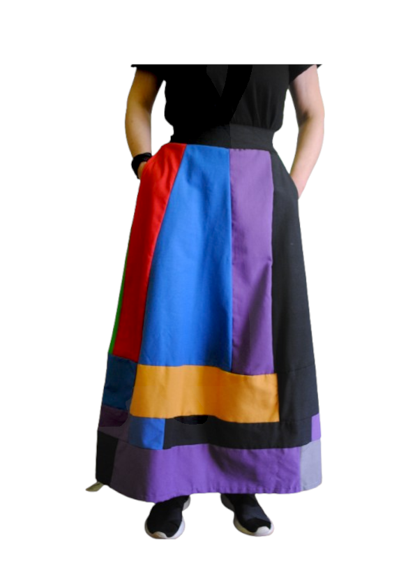 Falda patchwork  creada de principio a fin en nuestro TALLER ARTESANAL 637 de Artesanía de Galicia.