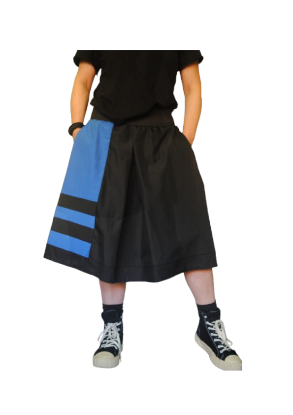 falda evocación Galicia con bolsillos ocultos entre sus pliegues, dos texturas de tejido, el negro es un algodón más ligero