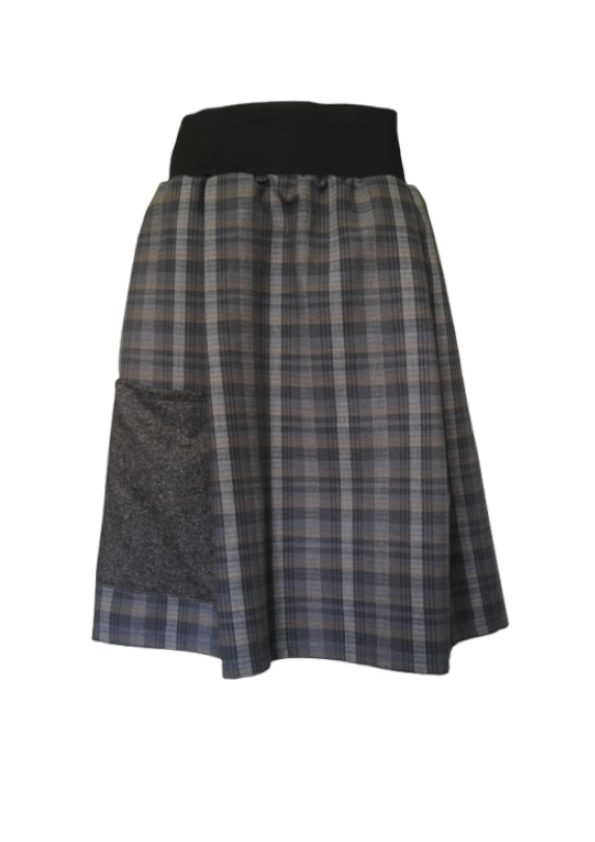 58,00€Falda circular con tejido escocés combinado con otras texturas de tejido; bolsillo exterior